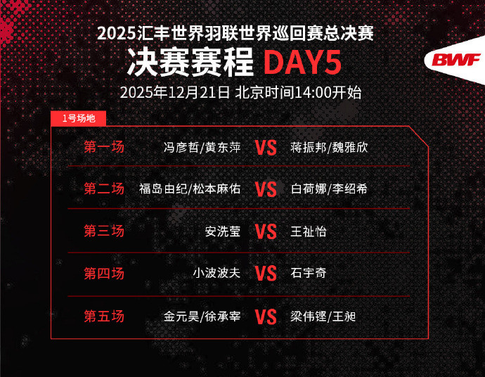 2025世界羽联年终总决赛第五日赛程
